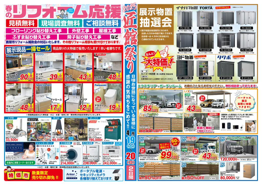 毎年人気の物置抽選会や展示現品一掃セールは早いもの勝ちとなっております‼