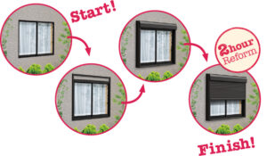 強風や飛来物から窓を守る、耐風シャッターの設置は、2.3時間で施工できるリフォーム用のものがございます。