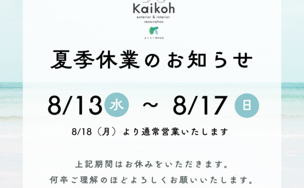 2025年8月1日お知らせ編集者01 夏季休業のお知らせいつも匠館をご利用いただき、誠にありがとうございます。 誠に勝手ながら 8月13日(水) ~ 8月17日(日) の期間を夏季休業と させていただきます。 お客様には大変ご迷惑をおかけいたしますが、 ご理解とご協力をお願い […]