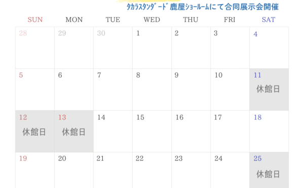 2025年9月25日お知らせ編集者01 10月匠館営業日のお知らせいつも匠館をご利用いただき、誠にありがとうございます。 10月匠館の開館日のご案内です。 ************************** 【営業時間】 平日 10:00〜16:00 土日祝 10:00〜16:0 […]