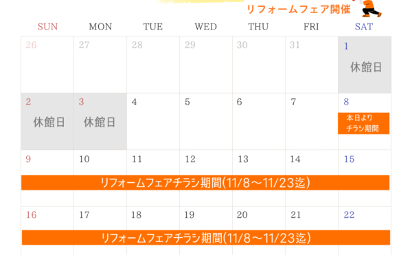2024年10月29日お知らせ編集者01 11月匠館営業日・イベント情報いつも匠館をご利用いただき、誠にありがとうございます。 11月匠館の開館日のご案内です。 ************************** 【営業時間】 平日 10:00〜16:00 土日祝 10:00〜16:0 […]