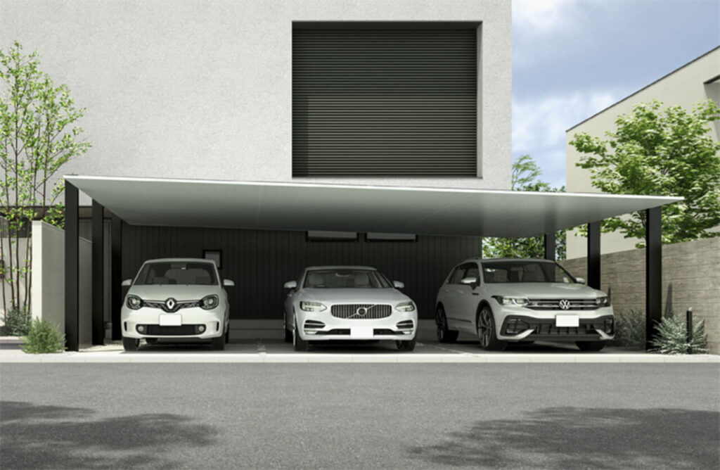 カーポートSCに3台用がラインアップ。単体サイズとしては最大のW90 L57もご用意。