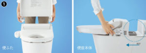 「ひとセンサー」検知で入るとパッと開き、退出すると約3分後(便座が開いている場合は5分後)に閉まります。